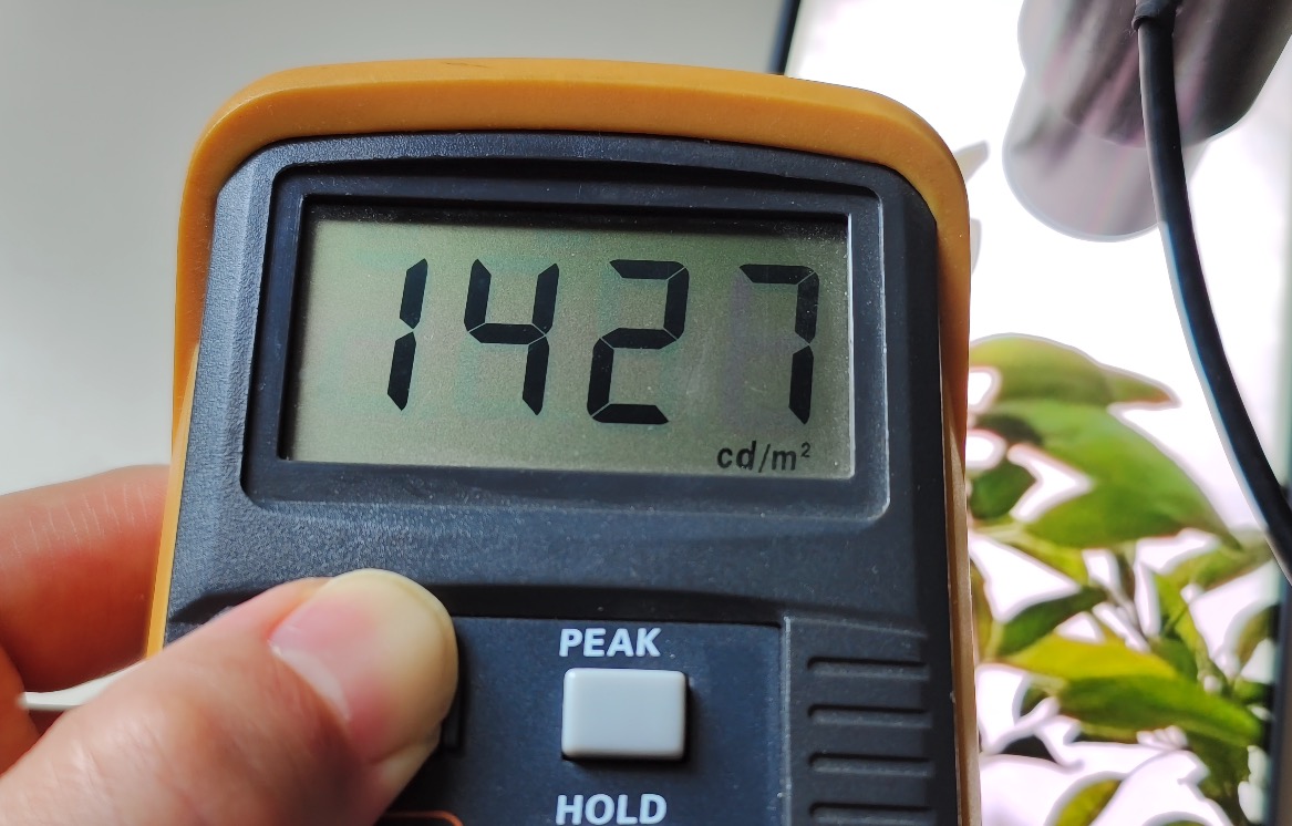 小编以自己拍摄的一张 HDR 照片为例,可以测得其中局部高光部分的亮度可以达到 1427nit,相当出色。