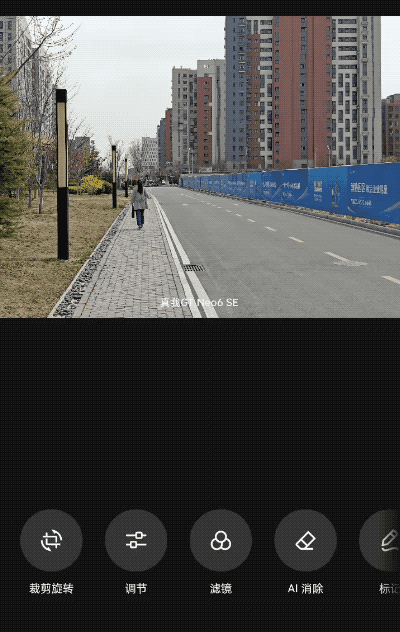 真我 GT Neo6 SE 另一大值得关注的卖点就是 AI,它实现了全场景 AI 深度赋能,除了在性能、续航等方面带来多项 AIGC 能力,还有众多 AIGC 加持的特色功能,比如真我 GT Neo6 SE 就搭载了旗舰同款的 AIGC 消除功能。当你拍摄照片后发现画面中有影响构图的元素,包括路人、杂物等,就可以一键圈定,然后系统智能识别并立即消除他们,还可以对消除后的区域进行智能填充。IT之家以自己拍摄的一张照片为例,消除照片中的这个路人,可以看到,只要手指轻轻一圈,就能识别出路人并将之消除,而填充后的照片看起来也非常自然,几乎看不到消除的痕迹,好像一开始就没拍到一样。