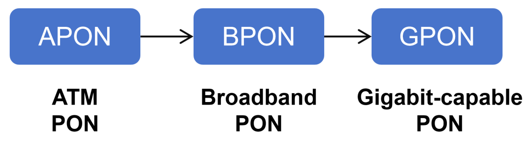 到了 2001 年,FSAN 和 ITU-T 对 APON 规范进行了升级修订,顺便改了个名,叫做 BPON(Broadband PON,宽带无源光网络)。之所以改名,主要是他们不希望 APON 被人误解为只能提供 ATM 业务。