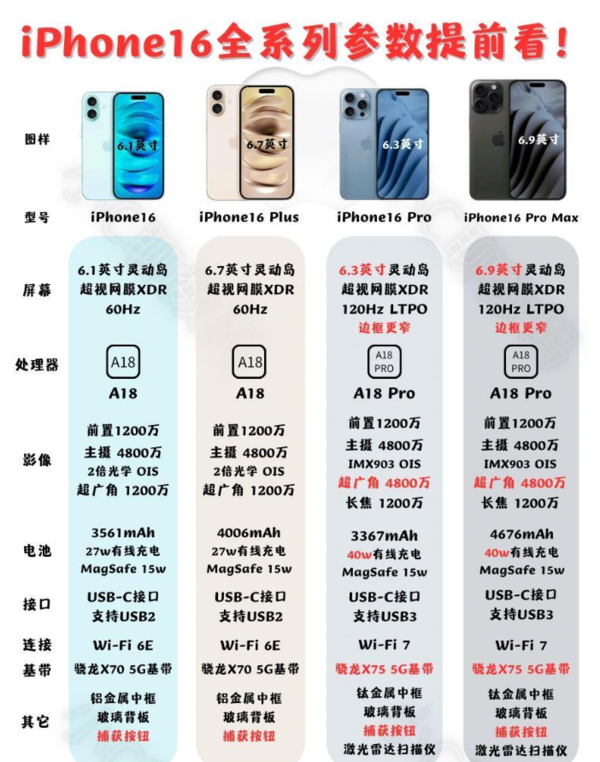 文章来源于互联网:凤凰网-苹果iPhone 16全系四款机型参数汇总 就差价格了