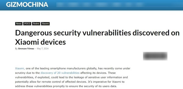 小米是全球领先的智能手机制造商之一。近日,有外媒报道称,小米因被发现影响其设备的20个安全漏洞而受到密切关注。这些漏洞如果被利用,可能会导致敏感用户信息泄露,并可能允许远程控制受影响的设备。外媒认为,小米迫切需要及时修复这些漏洞,确保用户数据的安全。