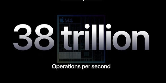 苹果表示,M4 拥有苹果有史以来最强大的神经引擎,每秒能够执行惊人的 38 万亿次操作,是 A11 Bionic 中的第一代神经引擎速度的 60 倍。