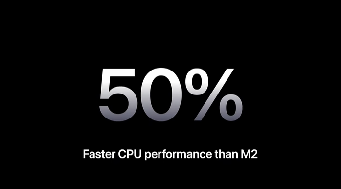 与前代 iPad Pro 搭载的 M2 相比,M4 的 CPU 性能提升了 50%。