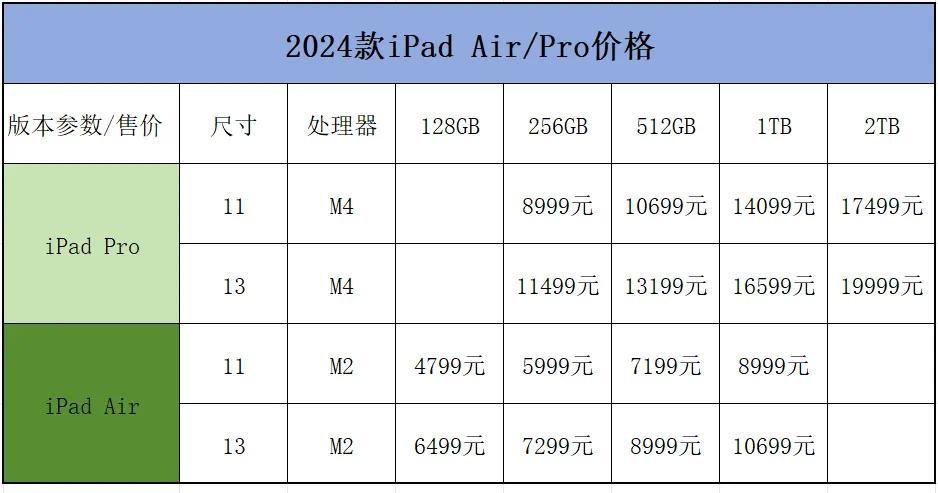 储存空间:iPad Pro有4个版本,256GB、512GB、1TB以及2TB。iPad Air有4个版本,128GB、256GB、512GB、1TB。