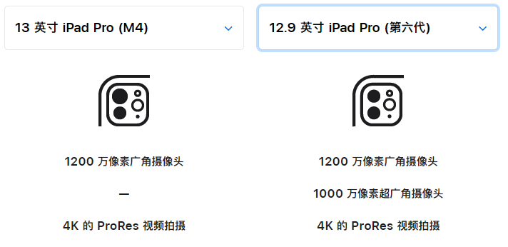 2022款iPad Pro,拥有12MP广角主摄+10MP超广角。新iPad Pro,只剩下12MP广角主摄。