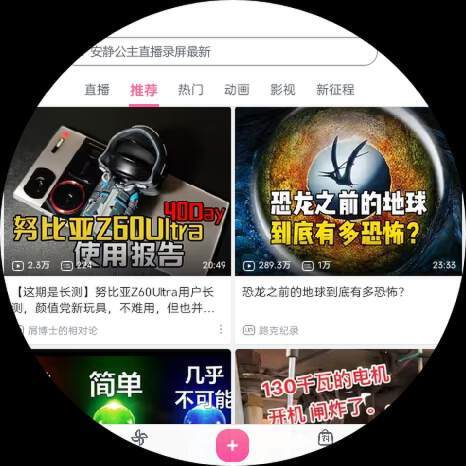 以“哔哩哔哩”为例,当在外屏上打开应用时,其界面仍沿用了大屏手机的布局,显然并未针对小外屏的特性进行专门的优化。