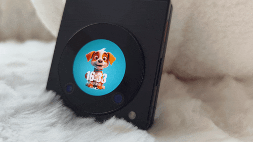 具体来看,努比亚 Flip 的外屏壁纸支持自选图片、萌宠壁纸、动态壁纸、抽象艺术、自然风光等多种风格,在这里你可以将自己喜欢的照片作为壁纸,也可以选择可爱的动态萌宠作为外屏壁纸,点击萌宠,还会产生不一样的动态效果,颇有几分电子宠物的感觉。