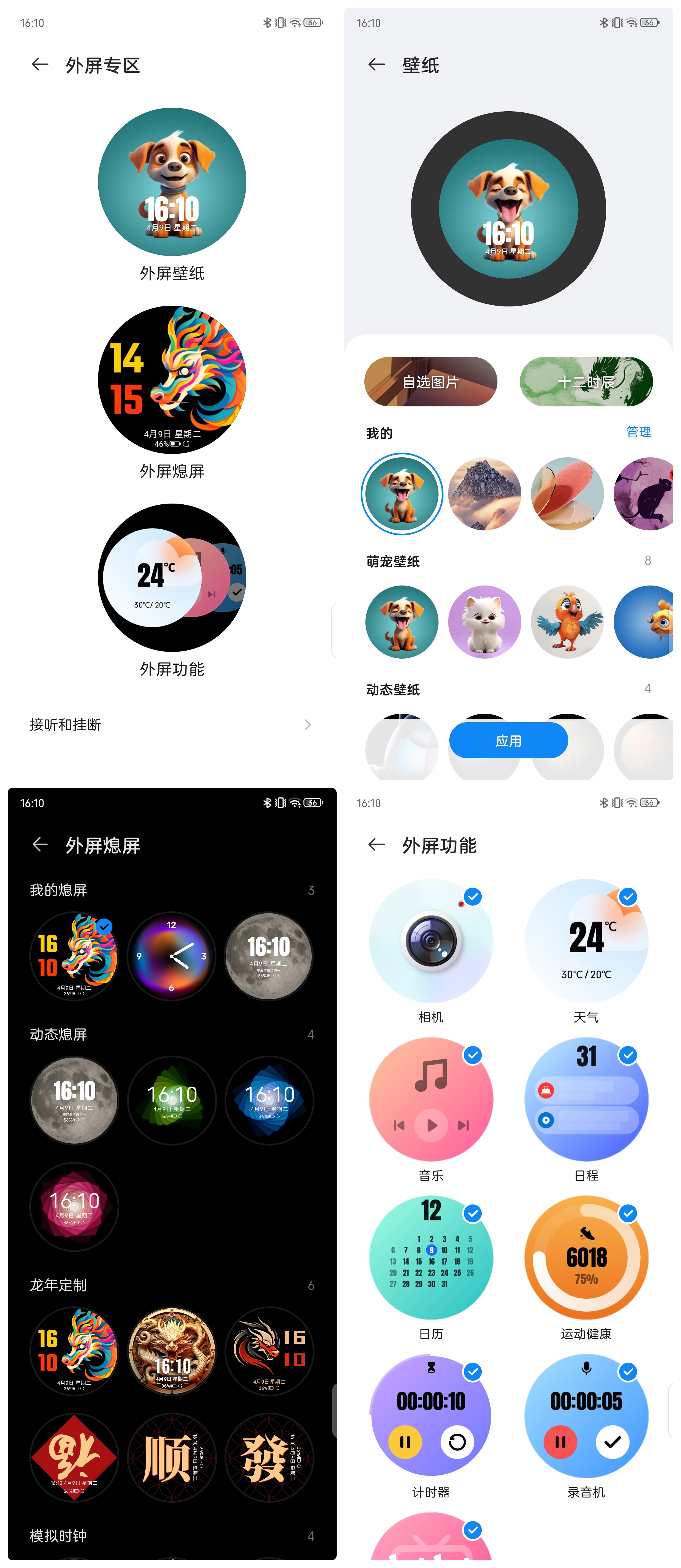 外屏熄屏方面,努比亚 Flip 提供了外屏时钟、个性签名、龙年定制、动态熄屏等多种风格选择。