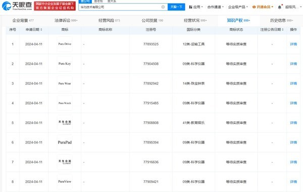 【CNMO科技消息】华为近期在知识产权领域动作频繁。天眼查的最新数据显示,该公司一口气申请注册了多个与“Pura”相关的商标,包括“PuraPad”“Pura Drive”“Pura Key”“Pura Watch”“PuraView”“Pura Ultra”以及“Pura Wear”,这些商标的国际分类覆盖了运输工具、科学仪器、珠宝钟表等多个领域。此外,华为还申请注册“天生会画”商标,国际分类为科学仪器、教育娱乐。目前,上述商标状态均为等待实质审查。