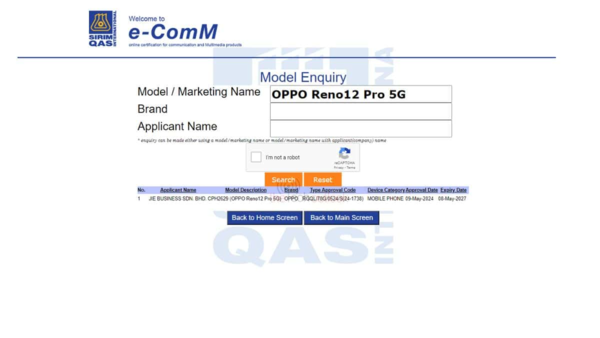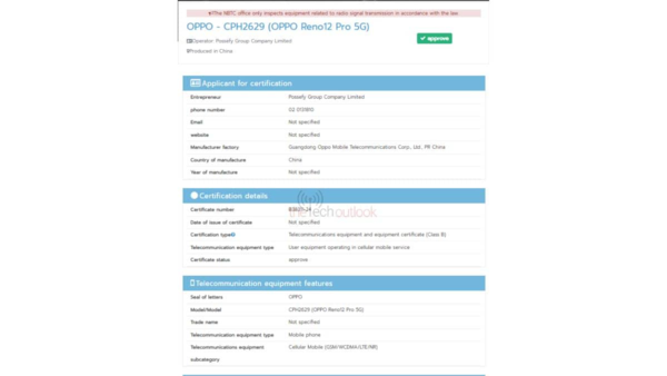 先从马来西亚的SIRIM认证谈起,型号CPH2629,认证类型标识为”RGQL/78G/0524/S(24-1738)”,认证日期为2024年5月9日。紧随其后的是泰国NBTC认证,确认型号为CPH2629,标注为OPPO Reno12 Pro 5G。