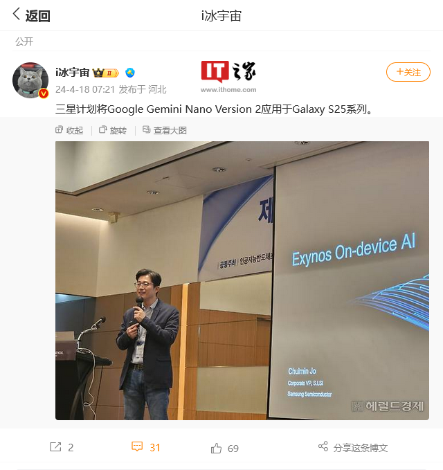 IT之家查询公开信息,该消息源今天还表示三星计划将 Google Gemini Nano Version 2 应用于 Galaxy S25 系列。