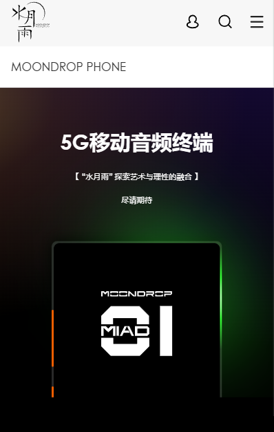 根据水月雨官网的预热,该机定位“5G HiFi Mobile Audio Device(5G HiFi 移动音频设备)”,号称“探索艺术与理性的融合”。
