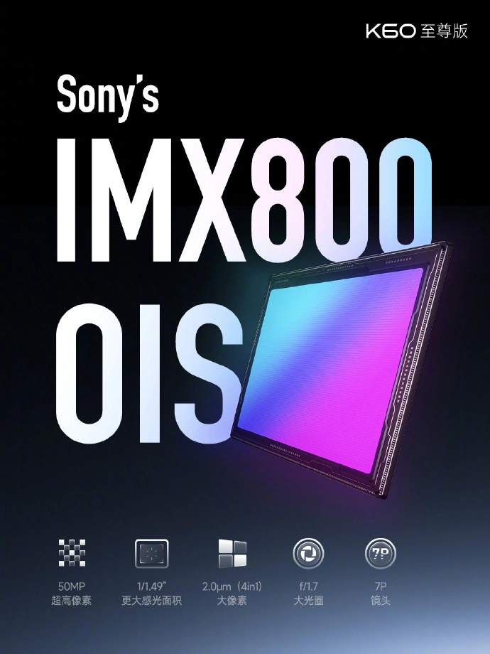影像方面,Redmi K60 至尊版后置 50MP(索尼 IMX800,OIS 光学防抖)主摄,以及 8MP 超广角 + 2MP 微距三摄,前置 20MP 居中挖孔镜头。
