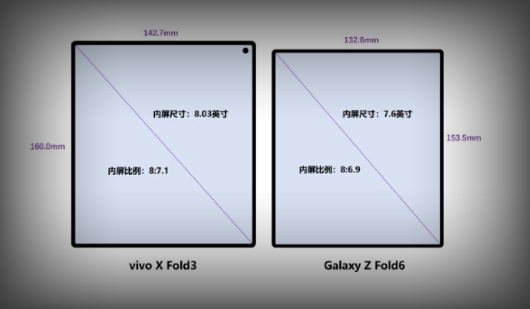 据示意图显示,Galaxy Z Fold6内屏尺寸为7.6英寸,内屏比例为8:6.9,展开后尺寸为132.6mm*153.5mm。同时,新机在保持大屏体验的同时,进一步减轻了机身重量,达到了238g,比上代Galaxy Z Fold5轻了15克,厚度也缩减至5.6mm,较上代的6.1mm更为轻薄。