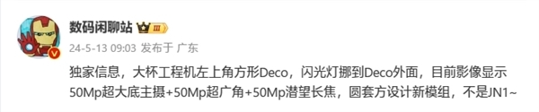 据博主“数码闲聊站”最新爆料,小米15 Pro工程机这次采用左上角方形Deco,但闪光灯将独立在模组之外。