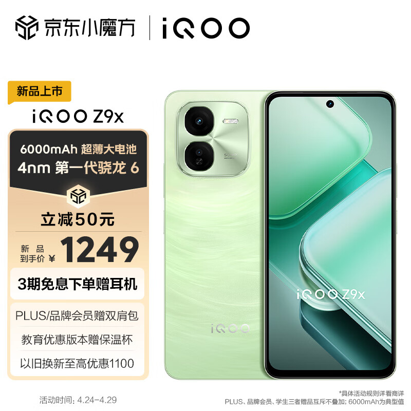 京东 vivoiQOO Z9x 8G+256GB 风羽青 1249 元直达链接