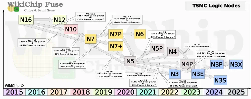 台积电的制程工艺并不一蹴而就,今年3nm明年就2nm,而是有很多个节点,比如3纳米制程就有N3(B)、N3E、N3P、N3S等等。