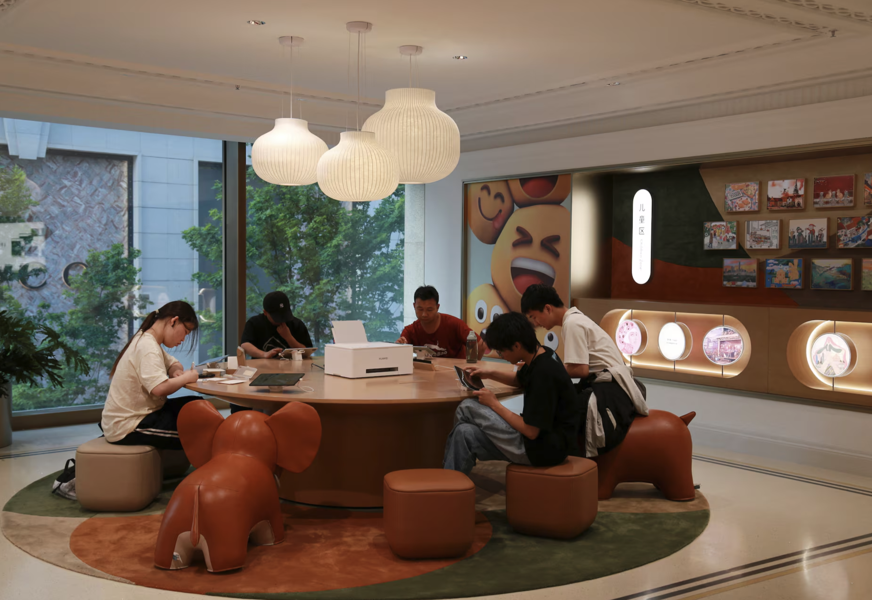 华为最近翻修了一家上海门店,正对面就是苹果旗舰店。华为的这家门店位于上海繁忙购物区的一座著名历史建筑内,占据了三层楼,里面包括一个咖啡店和一个健身房。