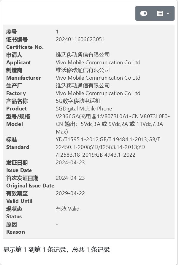 IT之家 4 月 26 日消息,vivo X100 Ultra 近日通过 3C 认证,型号为 V2366GA,显示支持 80W 充电,此外 vivo S19 Pro(型号为 V2362a)也通过认证,同样显示支持 80W 充电。