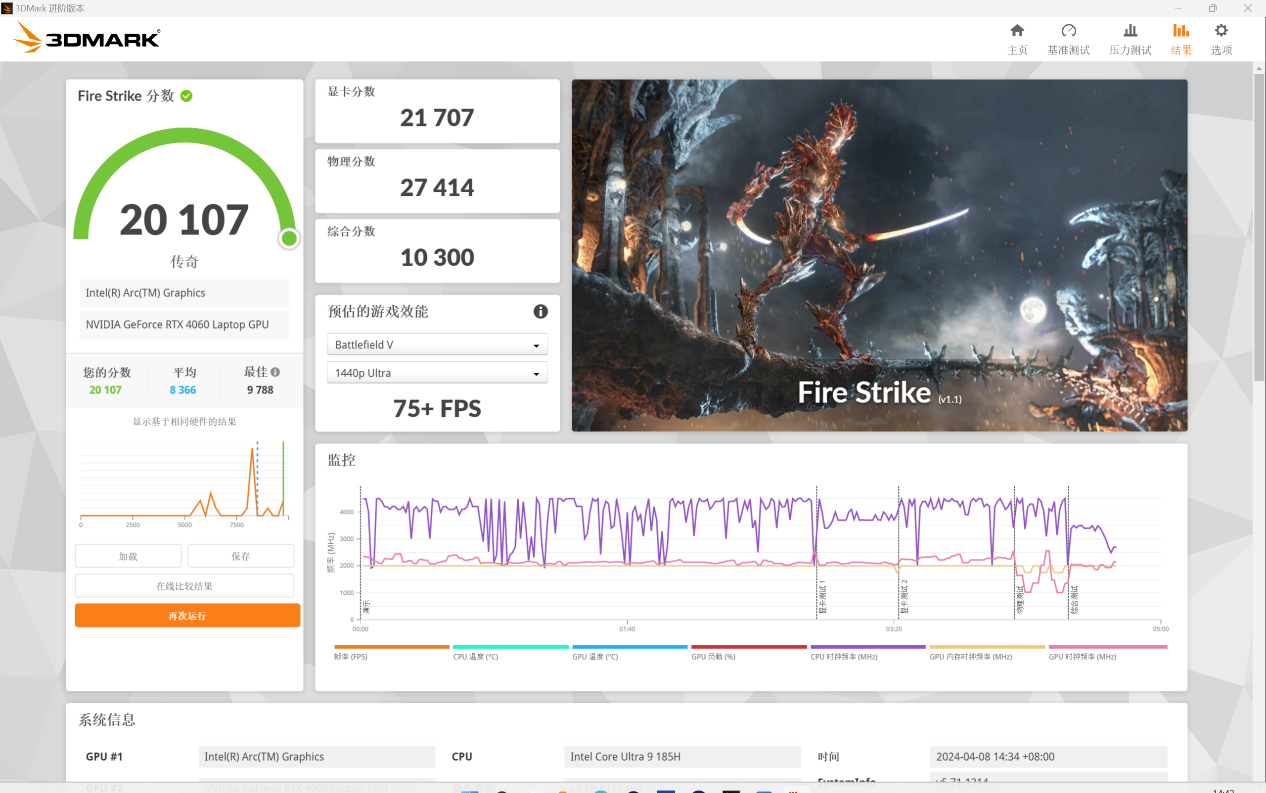 而在另一项 3D Mark FireStrike(DX11 游戏)测试项目中,昭阳 X7 的显卡分数达到了 21707 分,两项测试的成绩都不算差。