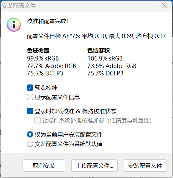 IT之家通过校色仪实测,这块屏幕的 sRGB 色域容积达到了 106%,色域覆盖也有 99.9%,其它两种色域的容积和覆盖均在 70% 以上,屏幕色彩表现 OK。