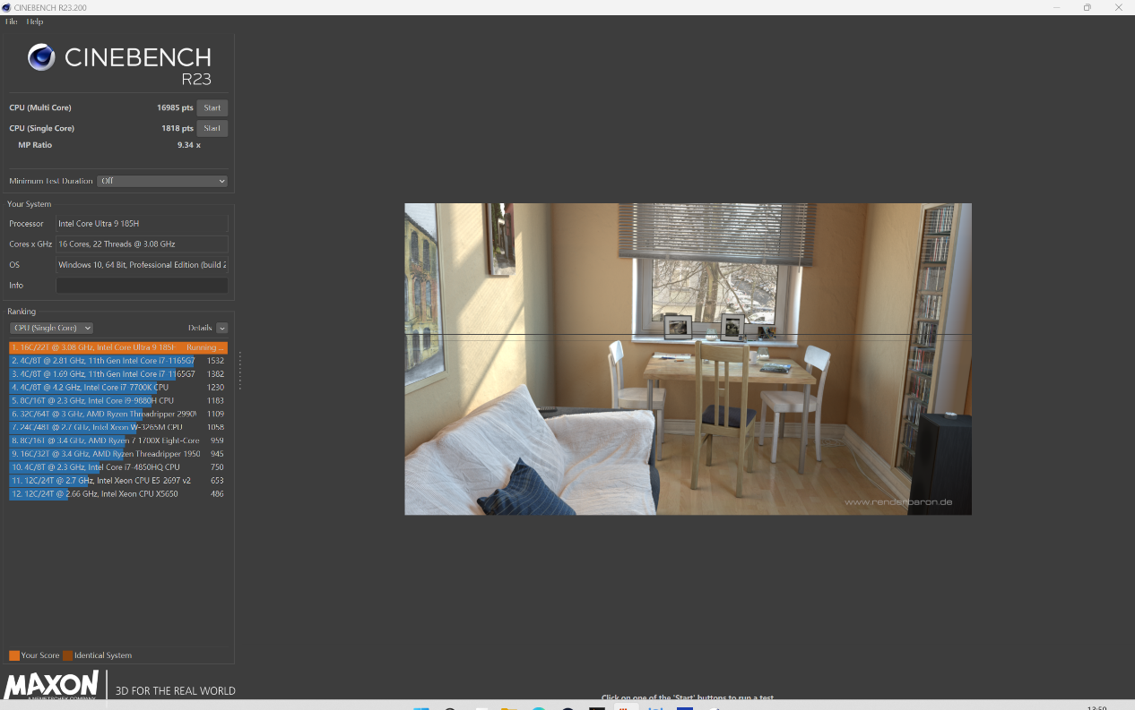 在 CineBench R23 的测试中,联想昭阳 X7 AI 高能本上的这颗 Ultra 9 185H 处理器跑出了 1818 分的单核成绩,16895 分的多核成绩,10 轮全核心循环测试最低分数也有 14000 分以上,作为对比目前最新的消费级轻薄全能本同款 Ultra 9 185H 的多核成绩在 19200 分左右,差距还是有的,不过讲道理这个成绩在商用本领域表现不错。