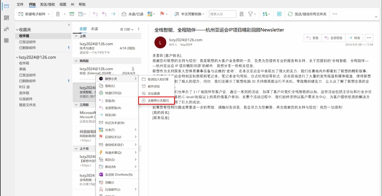 当然,喂给知识库的也不一定非要是文档,在线网页和邮件也是可以添加到知识库并提问联想小天,帮忙做总结或者资料检索的,适用性很广。