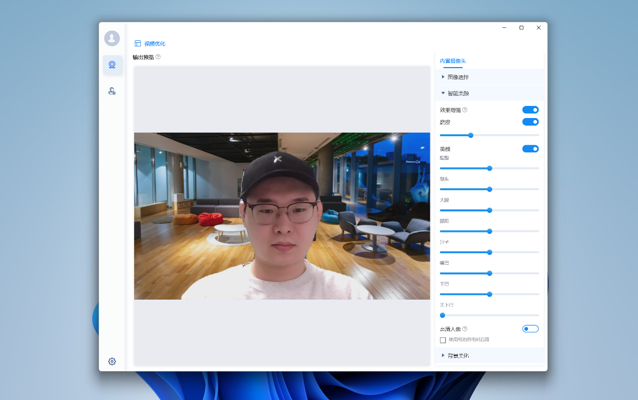 当然,联想昭阳 X7 AI 高能本的 AI 特性还不止于此,联想小天只是其中一个应用,机器中自带的联想智会应用和联想智能引擎应用也很实用。联想智会应用可以帮助我们更好的参与视频会议,基础的智能美颜和背景抠图肯定都有。