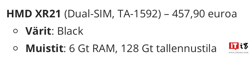 IT之家 4 月 27 日消息,HMD Global 旗下一款型号为 TA-1592 的手机已经现身零售商数据库,这款手机实际上就是诺基亚 XR21 的换标版本,预计命名为 HMD XR21。