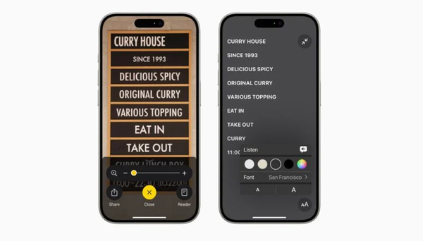 【CNMO科技消息】5月16日,CNMO了解到,在对iOS 18的预览中,苹果展示了一项针对视觉障碍用户的新功能——在“放大器”应用中添加了阅读模式。该功能能够将图像中的文字转换为统一的文本行,从而提供更为清晰易读的体验。尽管苹果并未提供该功能的详细参数,但官方公布的截图显示,用户将能够自定义字体大小,并享受文本朗读功能。