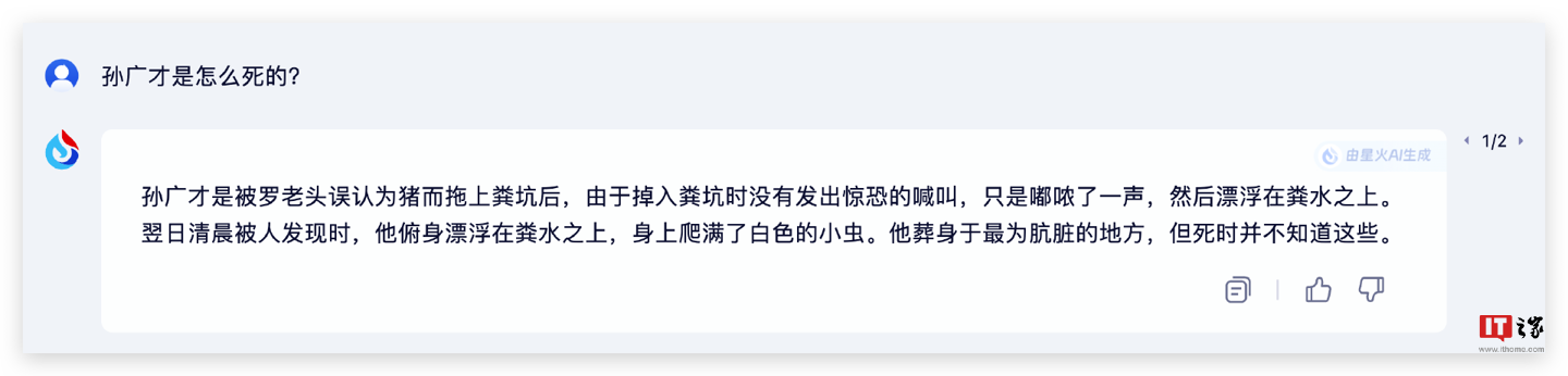 不过,关于一些更复杂的问题,讯飞星火 V3.5 在事实陈述上虽然明晰透彻,在深度评价方面稍显肤浅了一些。