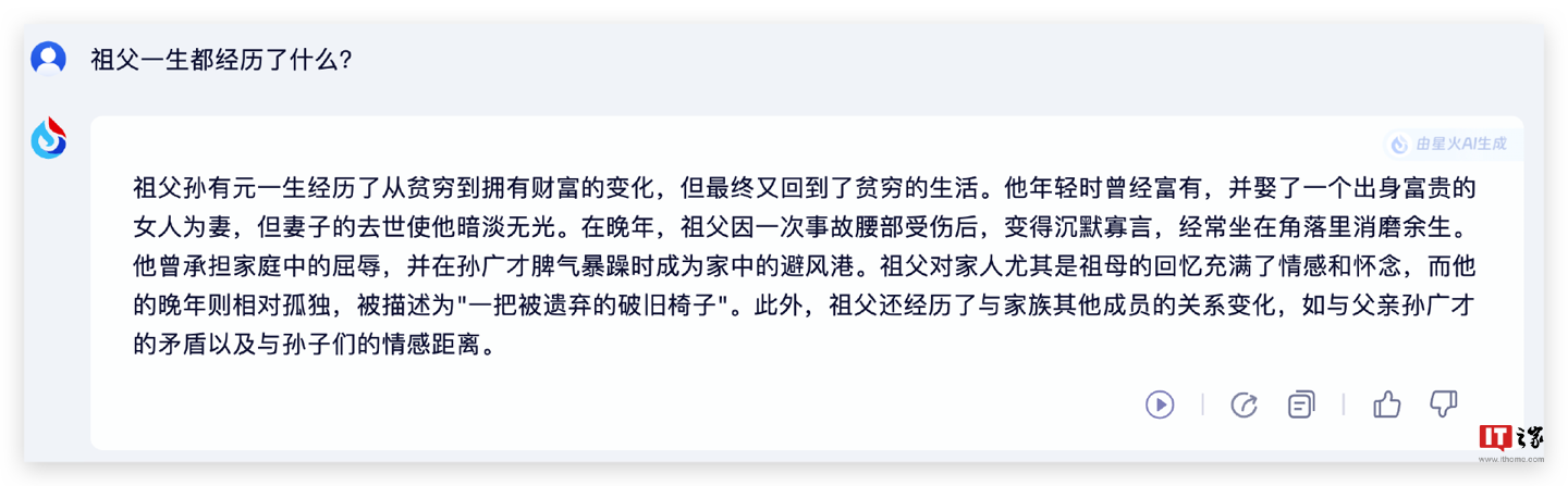 关于祖父的一生经历,讯飞星火 V3.5 也能做一个简练的总结: