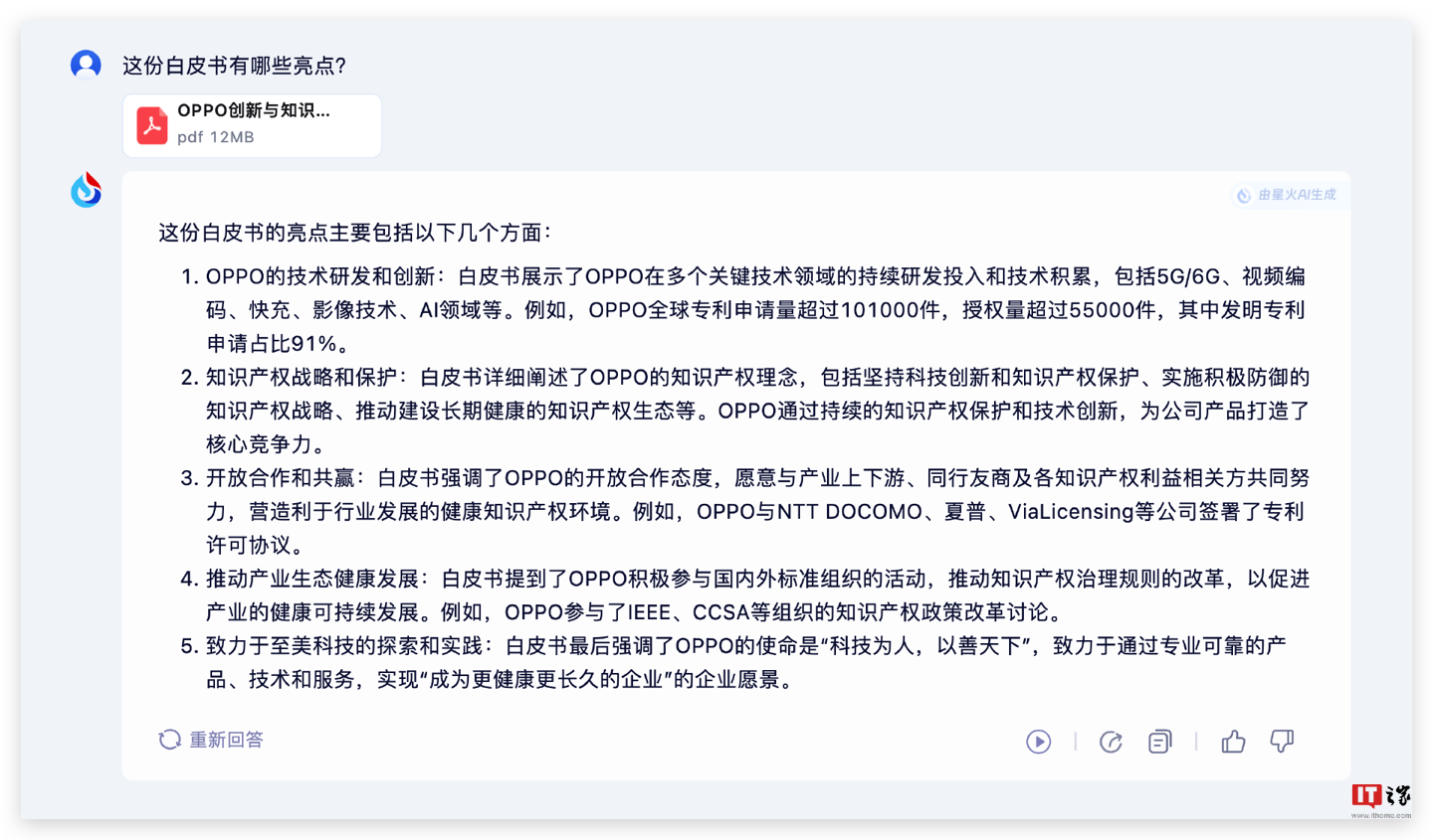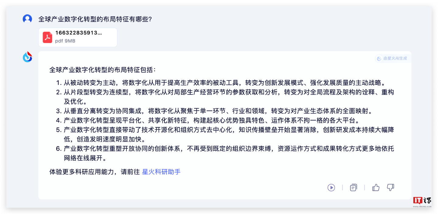 根据官方的说明,讯飞星火大模型在长文本处理方面,能够快速吸收和理解来自不同渠道的大量文本数据,针对各个行业和专业领域的问答,提供更加精准的回答。此外,在文件上传、知识问答响应速度以及文本生成等方面,讯飞星火的效率也得到了显著的提升。