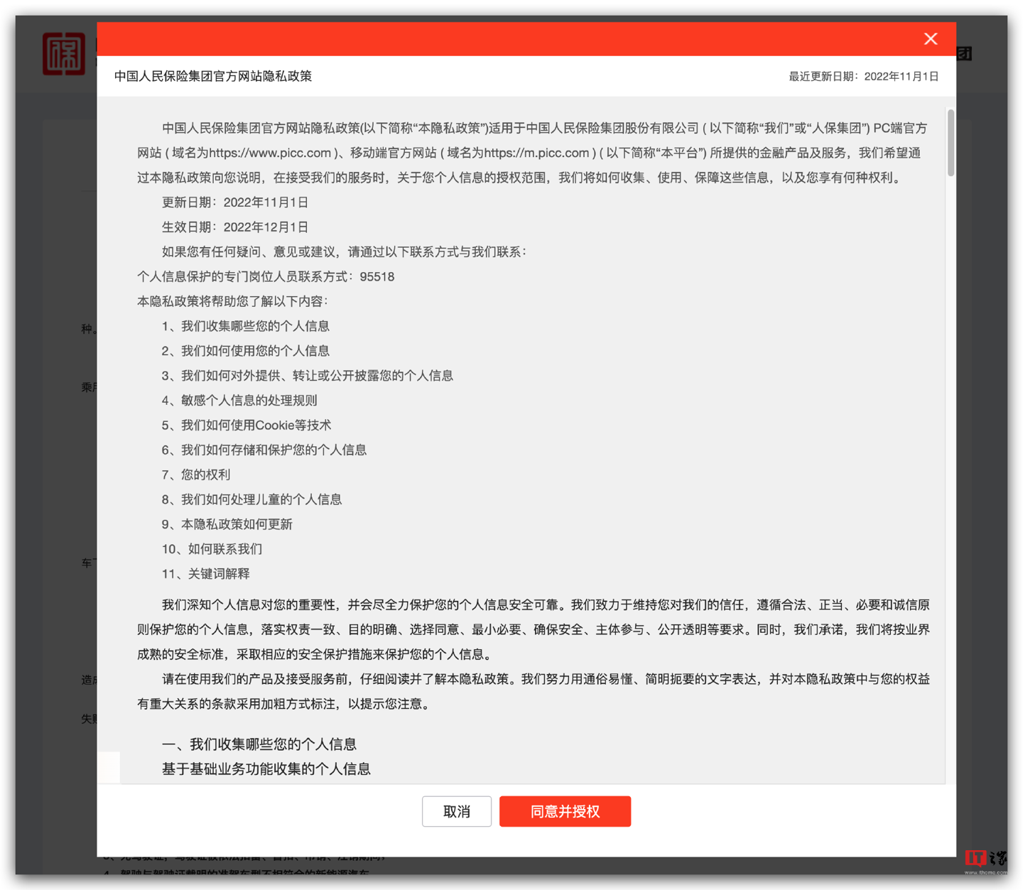 以下图的《网站隐私政策》为例,这种隐私政策在我们生活中到处可见,诸如每款 App 打开之前都滑动同意那些冗长的条款。