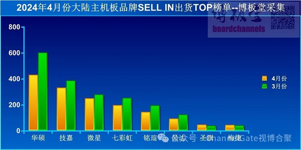 快科技5月17日消息,根据博板堂的数据,在2024年4月份,中国大陆主板市场的出货量出现了普遍下滑的情况。