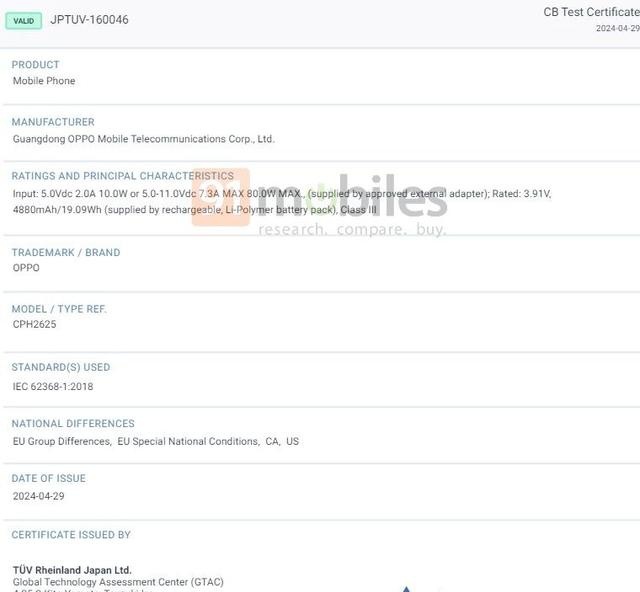 IT之家 5 月 17 日消息,一款型号为“CPH2625”的 OPPO 手机近日现身 GeekBench、TUV Rheinland 和 Camera-FV5,鉴于 Reno 12 Pro 手机的型号为“CPH2629”,推测该机上市后应该是 OPPO Reno 12。