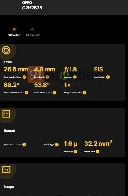 OPPO Reno 12 已在相机 FV-5 平台上曝光。这表明该手机背面将配备 1260 万像素主摄像头,但也可能是 5000 万像素传感器(像素合并 pixel binding)。该传感器将配备 f / 1.8 光圈、EIS 和 4.8 毫米焦距。手机正面将配备一个 830 万像素的传感器。