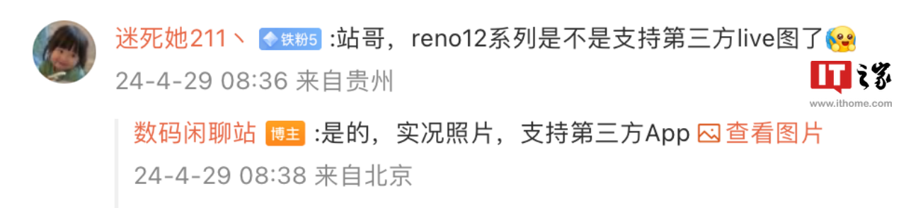 在评论区里他还提到,OPPO Reno 12 Pro 将搭载天玑 9200 处理器,该系列手机将支持实况照片功能,同时支持第三方 App 显示。