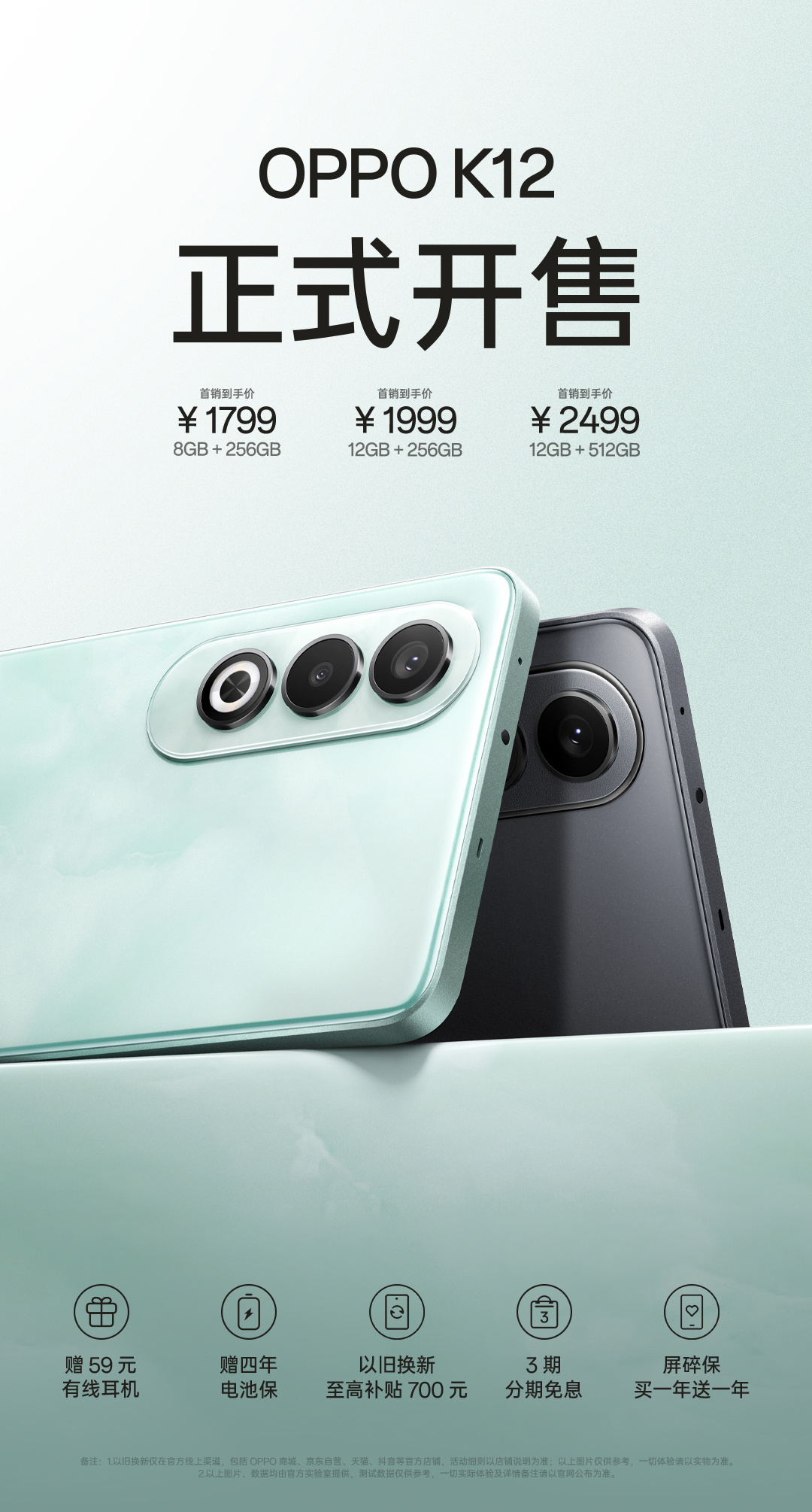 京东 OPPO K12 8GB+256GB 青云券后 1799 元领 100 元券