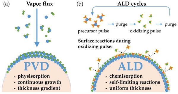 原子层沉积是一种基于连续使用气相化学过程的薄膜沉积技术,通过将物质以单原子膜形式逐层镀在衬底表面的方式实现。ALD是一种纳米技术,可以以精确控制方式实现纳米级超薄薄膜沉积。