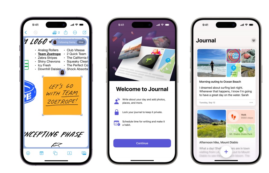 当你创作手记时,iPhone 也会给你写作提示,帮助你轻松开始记录,⽐如,“旅⾏的亮点是什么?”或“这些照⽚背后的故事是什么?”你也可以选择回顾类提示为你的写作带来灵感,⽐如,“你的秘密超能⼒是什么?”或“哪项活动最让你感到活⼒充沛?”