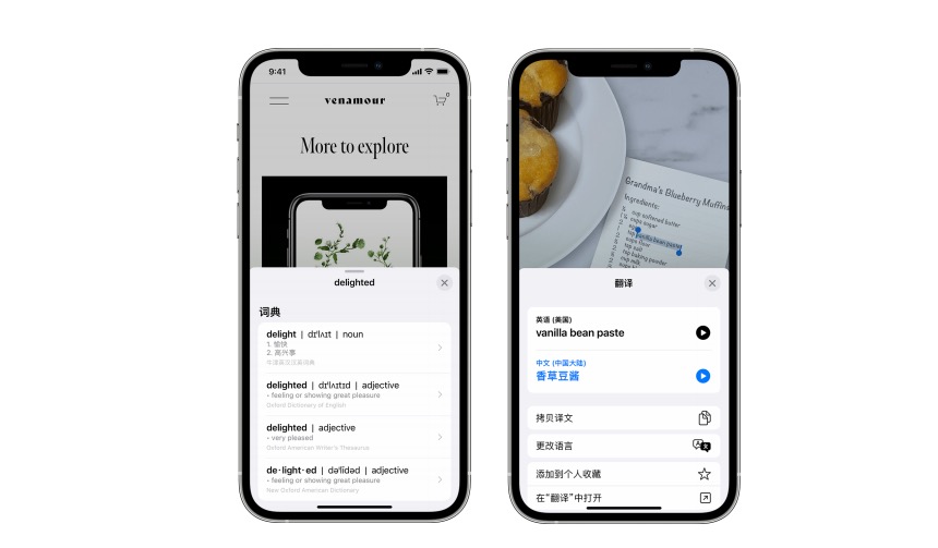 当你到达了一些景区,需要留存景区告示牌上的信息,或者出国旅游,对菜单、告示牌上的信息需要翻译时,就可以通过 iPhone 相机使用实况文本这个功能,通过“相机”取景,就可拷贝、共享、查询和翻译出现在相机取景框中的文本,你甚至还可基于显示在取景框中的文本来提供快速操作,以轻松拨打电话号码、访问网站、转换货币等,非常方便。