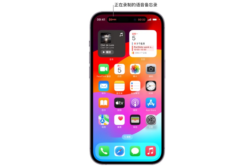 此外,iPhone 上的小组件也可以和灵动岛搭配,让你更方便地了解天气、时间、日期、电池电量或临近日程等信息。