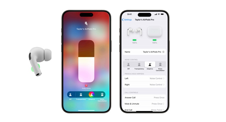 而且,AirPods Pro 和 iPhone 配合,还能对你你所处环境与惯常聆听偏好作出响应,调整你的媒体⾳量,无需你手动设置。