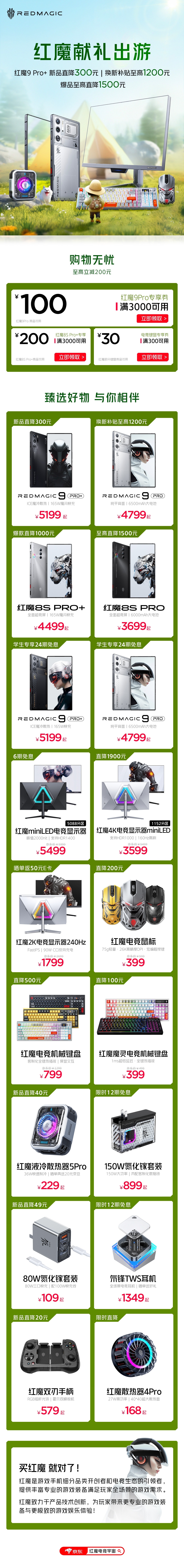 红魔 9 Pro + 手机,直降 300 元,学生专享 24 期免息,5199 元起