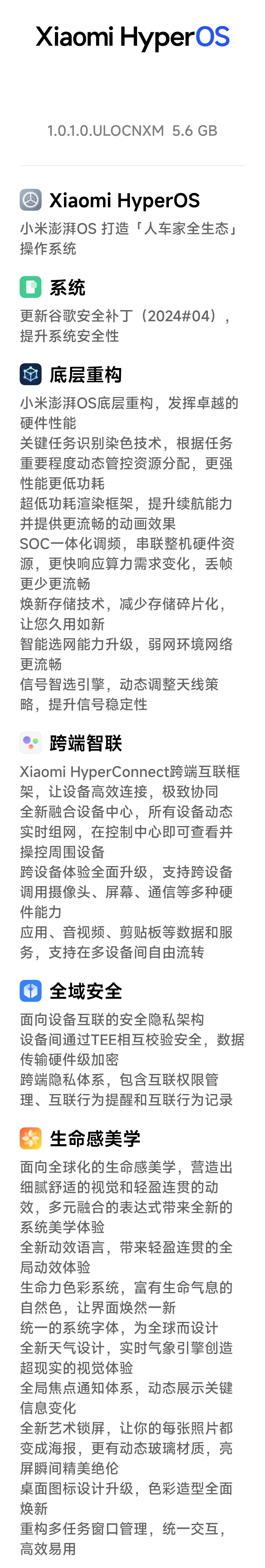 文章来源于互联网:IT之家-小米 Redmi Note 11T Pro 手机获推澎湃 HyperOS 正式版更新,附带谷歌 4 月安全补丁