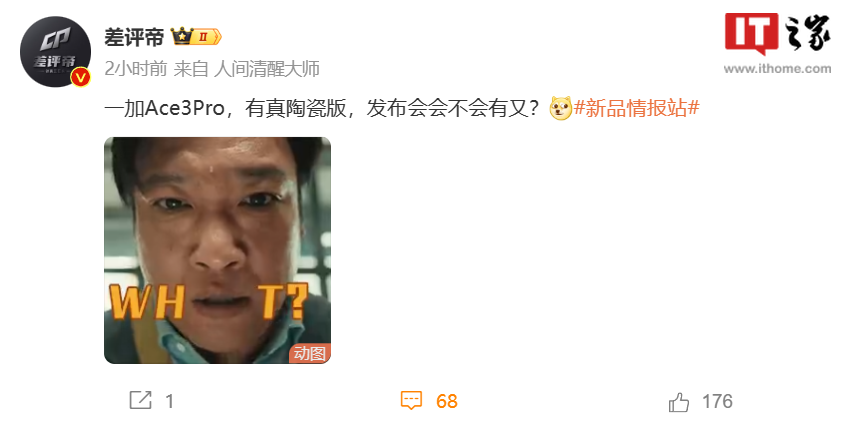 另外,博主 @差评帝今日发帖表示,一加 Ace 3 Pro 手机还将拥有陶瓷版本。