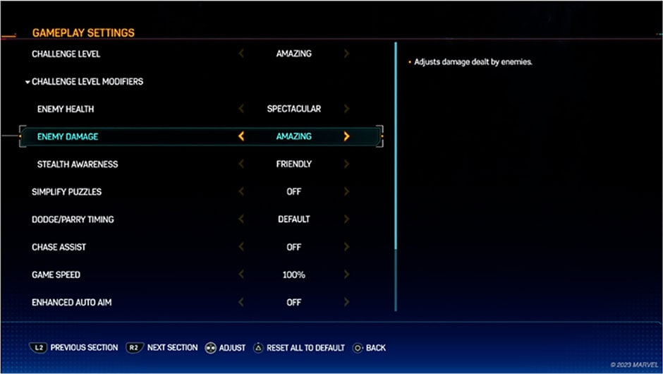 此外,PlayStation 工作室的许多工作室都致力于制作既具包容性又易于上手的游戏。Insomniac Games 制作的《漫威蜘蛛侠 2》在汲取过去游戏中的宝贵经验的同时,继续与无障碍顾问合作,使其成为迄今为止PlayStation 游戏中具备最全面无障碍功能的游戏,搭载包括游戏速度、屏幕阅读器、挑战等级修改器等显著的无障碍功能。