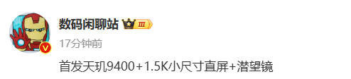 【CNMO科技消息】5月22日,爆料人士“数码闲聊站”放出了疑似OPPO Find X8系列标准版机型的核心配置:联发科天玑9400处理器+1.5K小尺寸直屏+潜望式长焦摄像头。这一套配置非常能打,兼具性能、屏幕和影像,同时切入了近几年OPPO少有涉及的小屏手机市场,其市场表现值得关注。