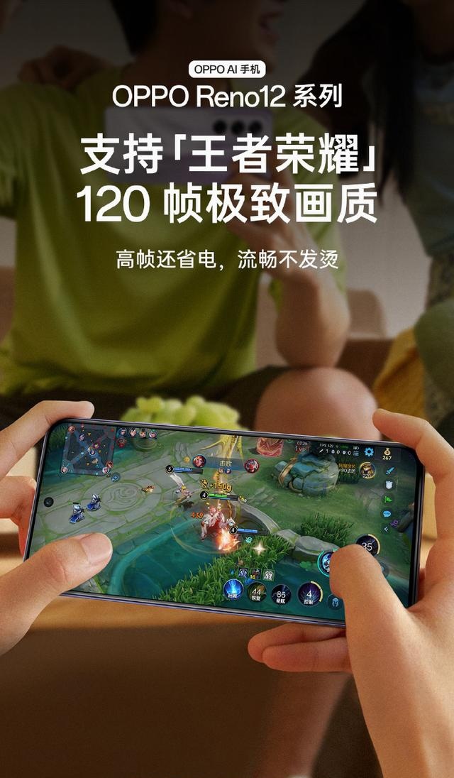 在具体的游戏画面表现上,OPPO 目前已公布 Reno 12 系列手机适配王者荣耀和逆水寒手游,官方称“高帧还省电,流畅不发烫”。其中,王者荣耀支持 120 帧极致画质。